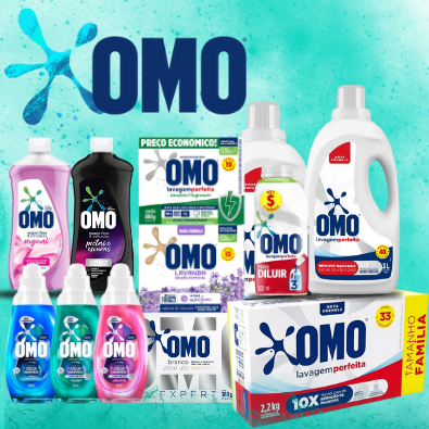 - Sabões líquidos e em pó OMO com alto poder de remoção de manchas